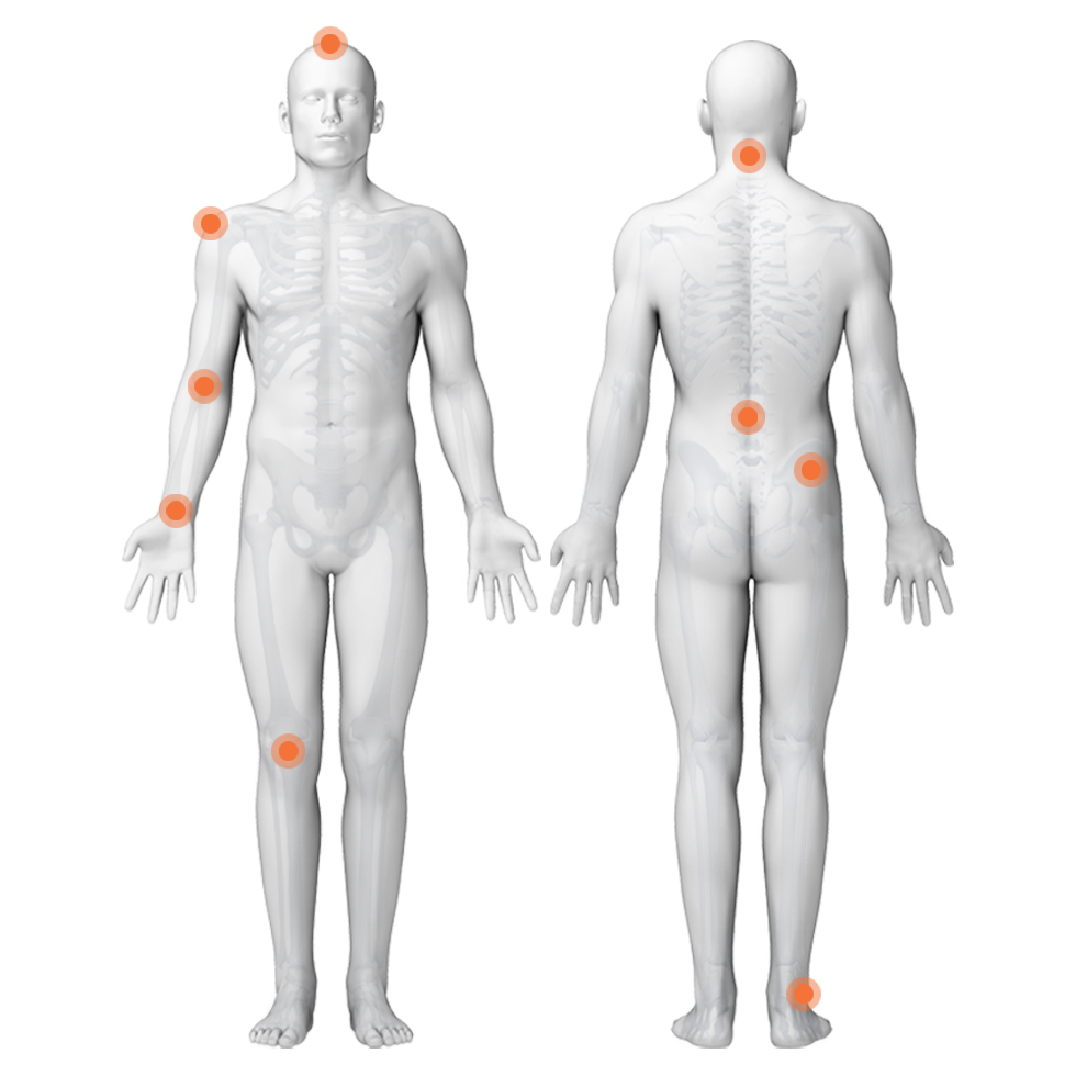 머리 어깨 팔꿈치 손/손목 무릎 목 허리 고관절 발/발목